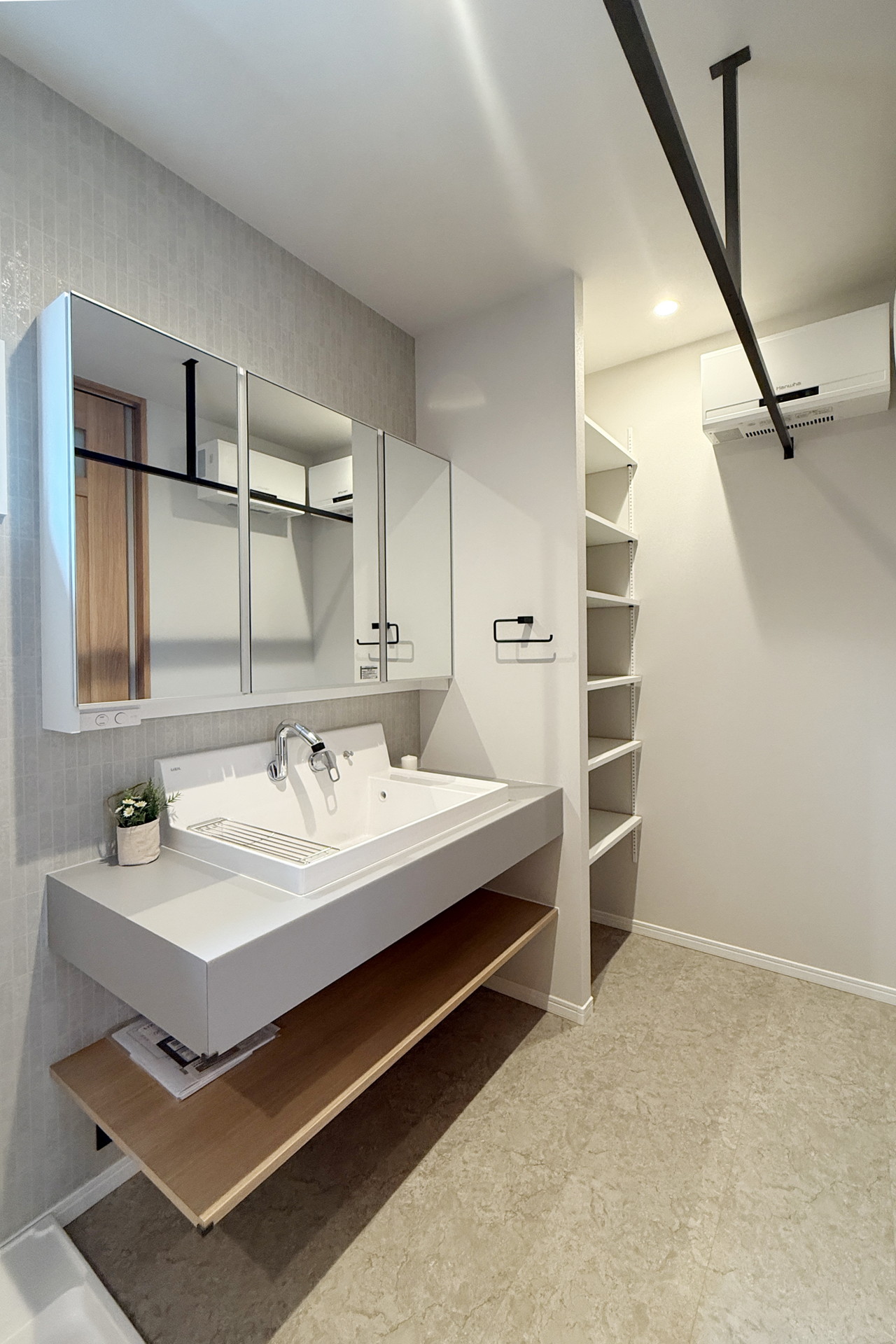 LDKはゆとりの22.8畳を確保!LDKと繋がる中庭は外の目線を遮るのでカーテンレスで過ごすことが!独立ランドリースペースはWCLとも繋がり洗濯動線もスムーズ!