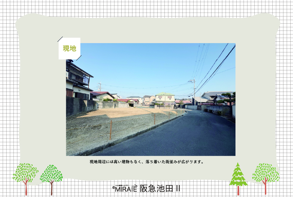 池田駅徒歩15分|2方向が道路に面した開放的な立地で叶える注文建築! - 駅まで平坦な道のりでフラットアクセスが叶います。ベビーカーや電動自転車での移動もスムーズ!