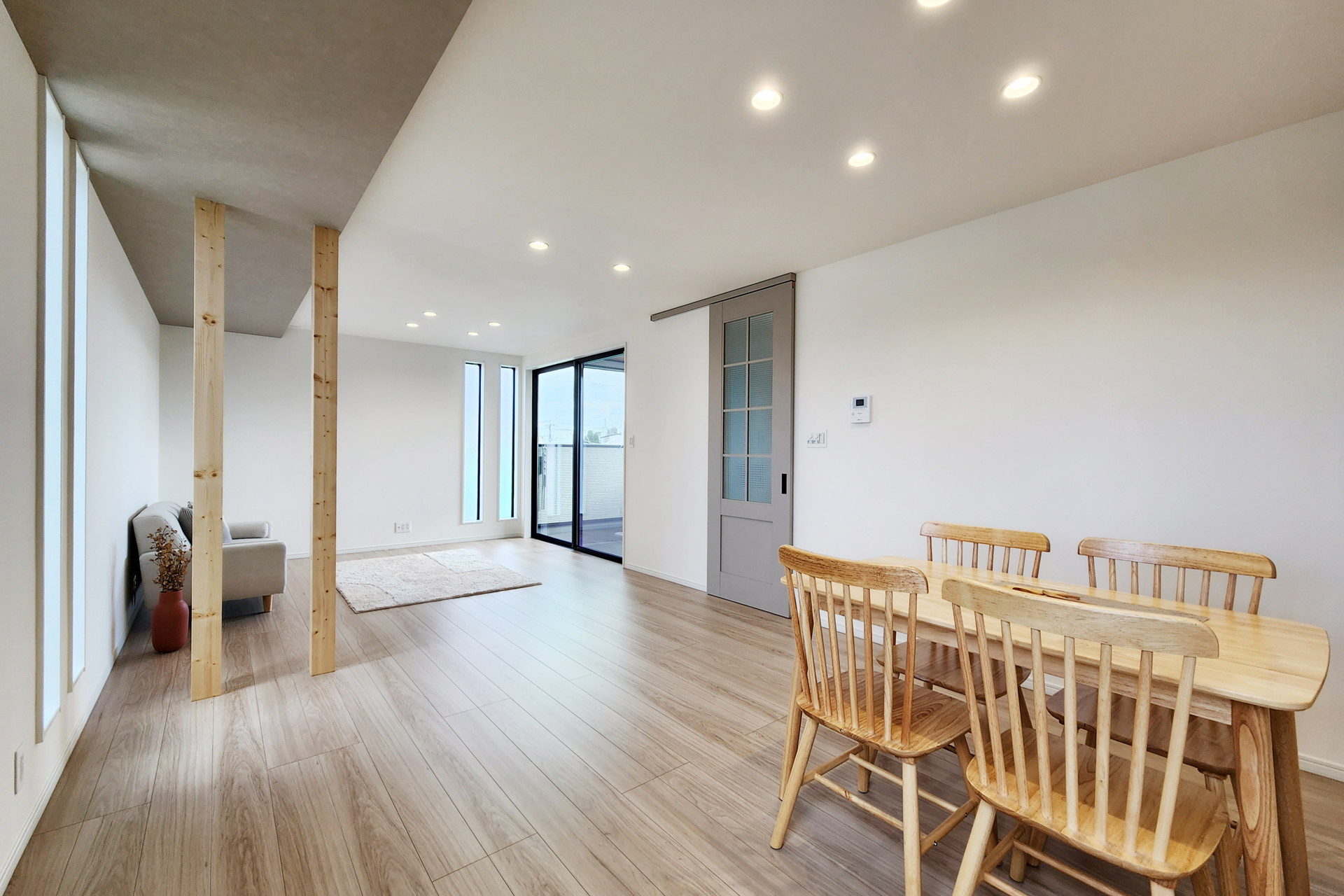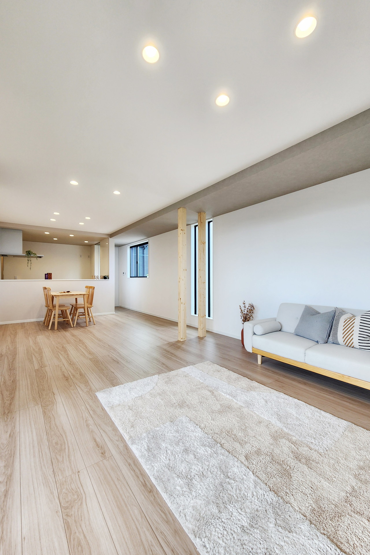 LDKと水回りをワンフロアに集約した家事ラク動線を叶え、南向きにはバルコニーを。『開放感』と『家事の時短』が実現する、永く暮らしやすい間取りにこだわっています。どんなインテリアにも合いやすいアースカラーを用いた「大人カワイイ」テイストで、落ち着いた大人の女性を楽しむインテリアが完成しました。