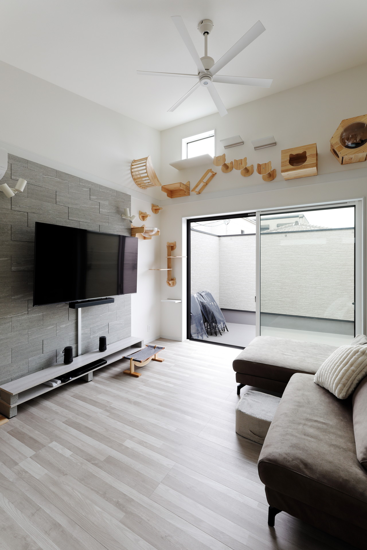 ・吹き抜けの梁や壁面の高い位置にキャットウォークを用意する。(干渉されたくない時の逃げ場所として)