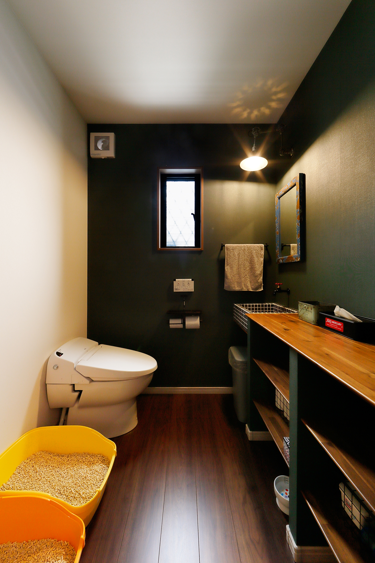 こちらの住まいでは、トイレスペースを大胆に広くとり、猫ちゃんトイレも一緒に置けるようにプランニングされました。
