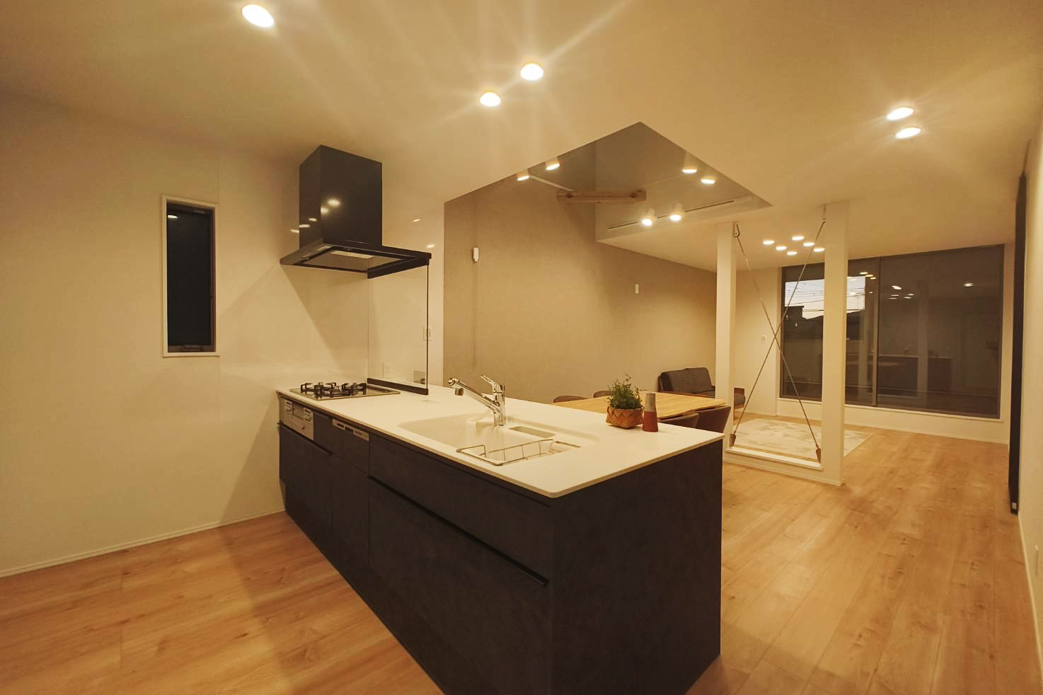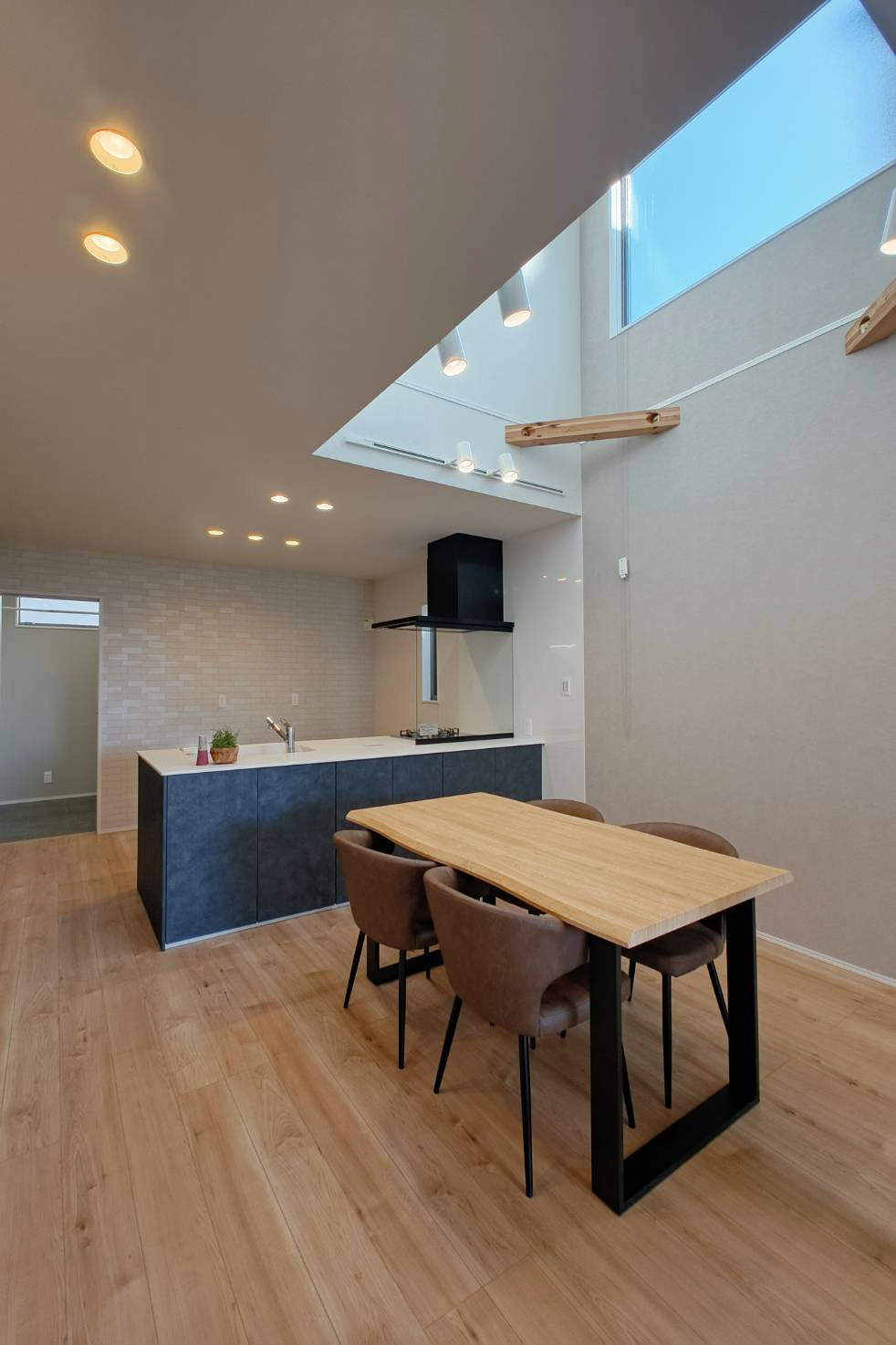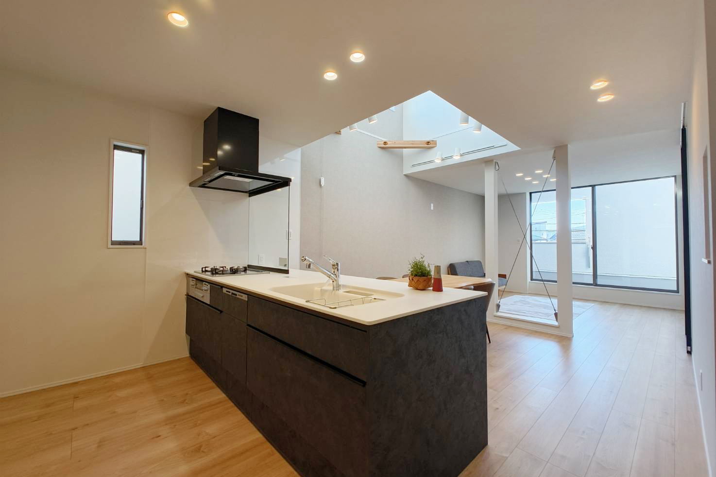 広々20畳超LDKの上部には吹き抜けで開放感を叶えつつも、水回り設備を集約することで家事ラク動線が完成!シャッター付きのインナーガレージも確保しているので雨の日や黄砂などの対策にも安心ですね。