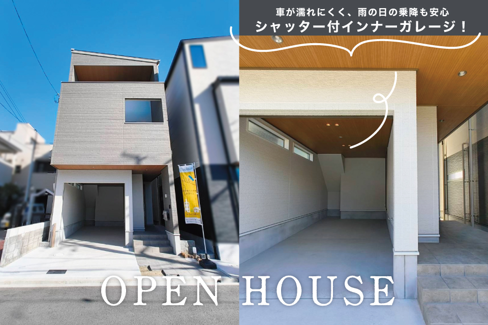 ⚫︎インナーガレージ・シャッター付きなので雨の日や黄砂にも安心。