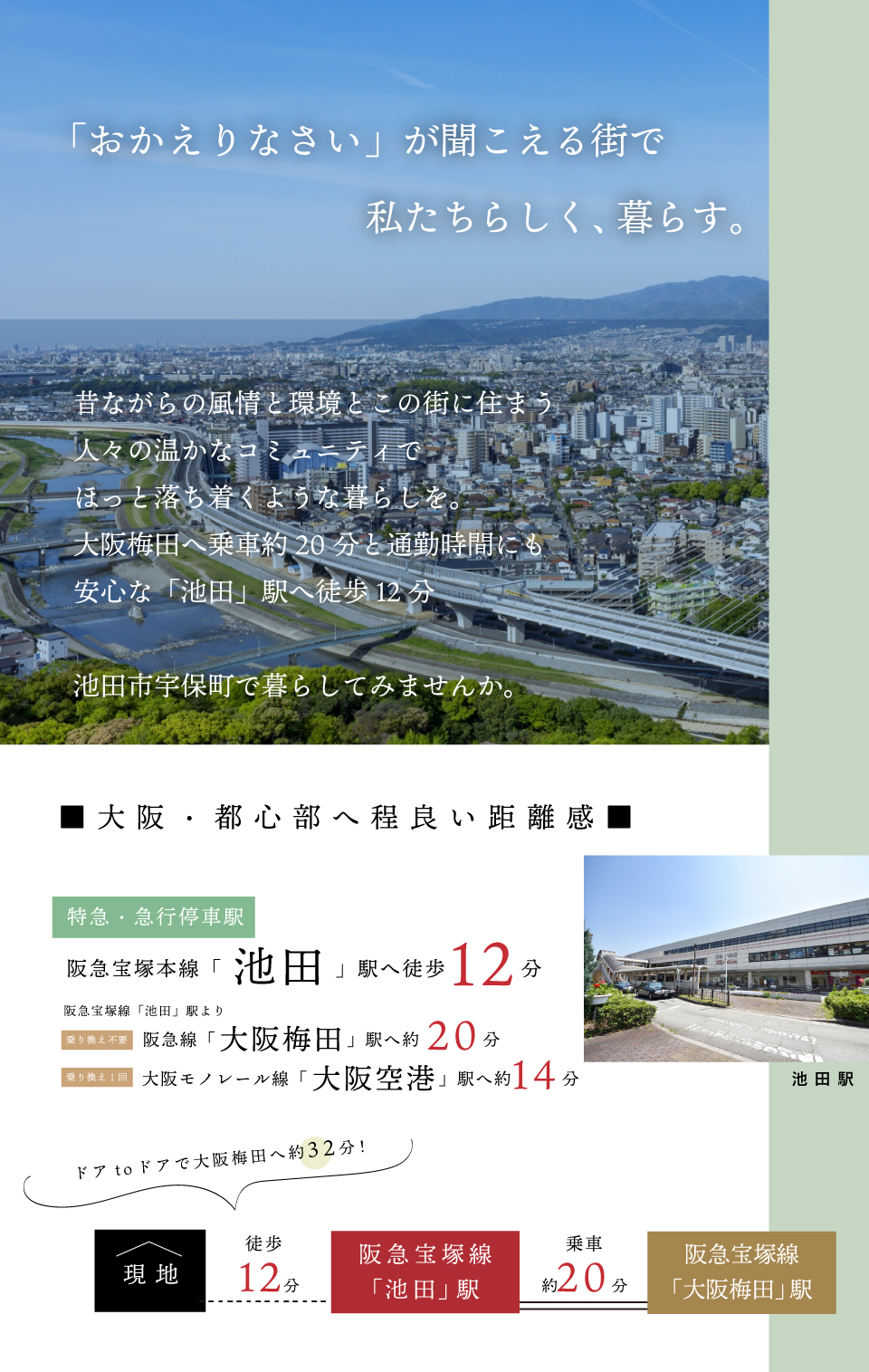 | 交通 | 阪急宝塚線「池田」駅 徒歩12分 阪急宝塚線「石橋阪大前」駅 自転車約9分 |