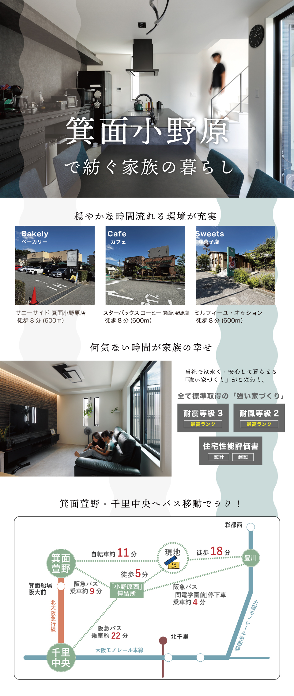 休日にはみのおキューズモールで家族で過ごせたりと豊かな暮らし叶う環境です。