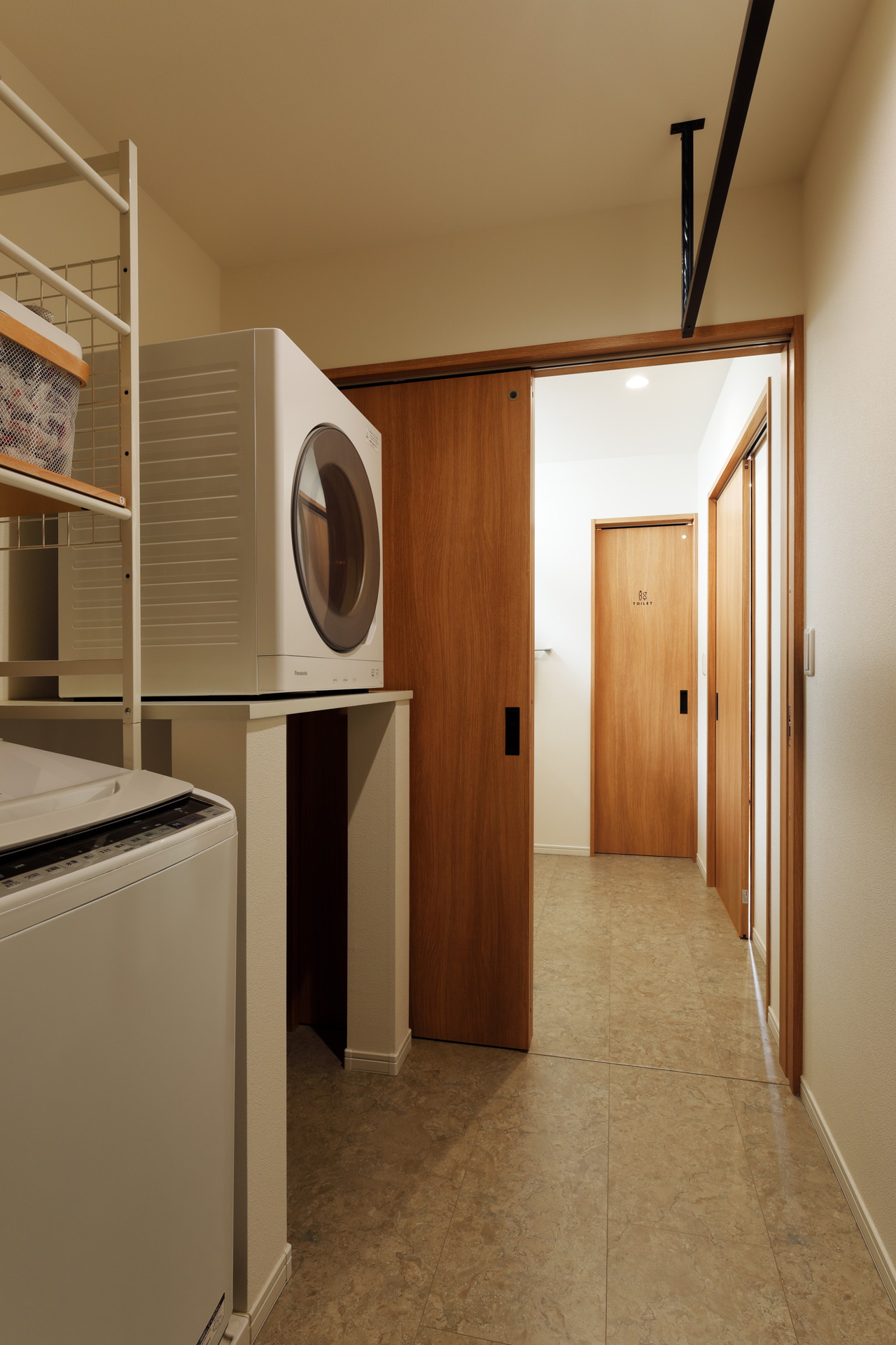 LDK・洗面・お風呂・バルコニーを2階にまとめ、生活動線がワンフロアで完結する間取りに。リビングからつながるバルコニーは高い塀を設け、外部からの目線が気になりにくいプライバシーを確保したレイアウトにこだわりました。
